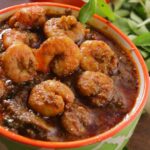 | 1 bowl of large prawns, made Andhra-style with lots of onions, tomatoes, curry leaves, coriander, mint, coconut milk and whole Indian spices. Served with 1 bowl of fragrant basmati rice (serves 1). |
